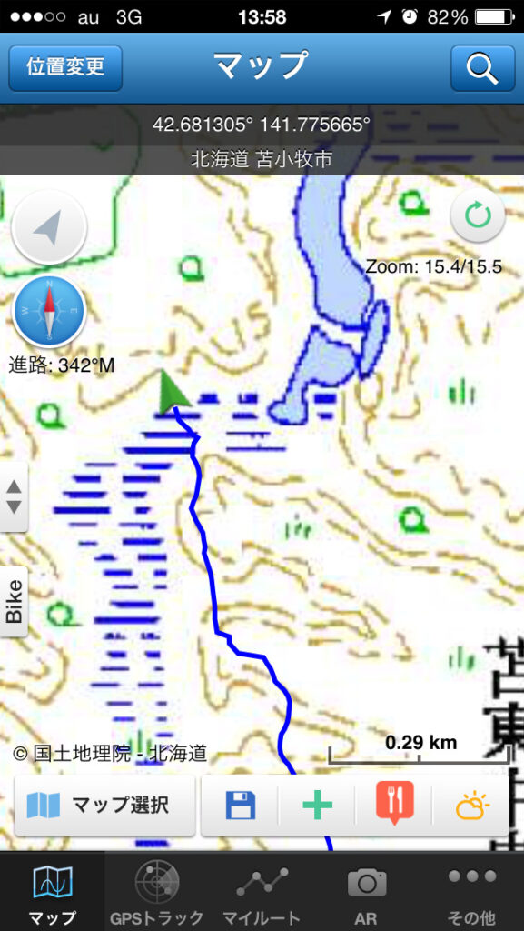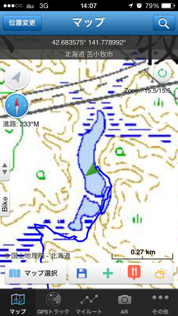 ▼北電の高圧線の下に管理用の桟橋があった。地理院地図に載っていたのはこれか!
