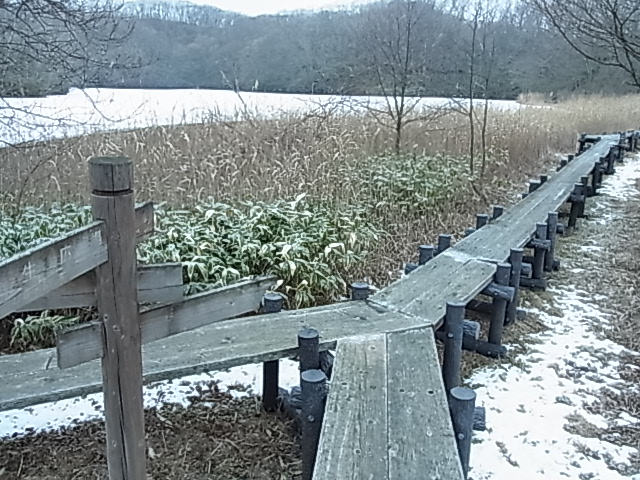 ▼芝生広場から錦小沼の周回コースへ進む。今回、スノーシューは不要!