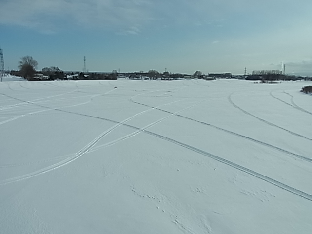 ▼モエレ沼にはスノーモービル