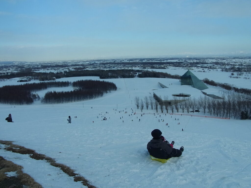 ▼モエレ山 沢山そり遊びしているなー