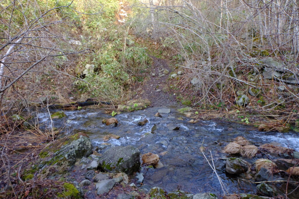 ▼あまりに急な斜面だったので、尻滑りで一気に下る。