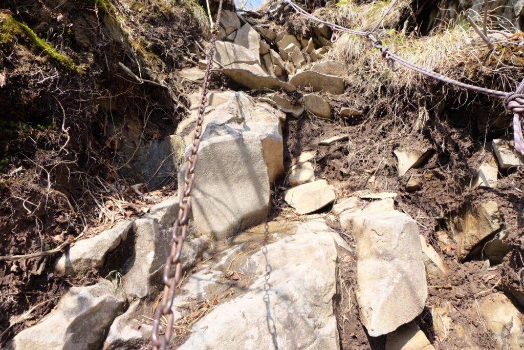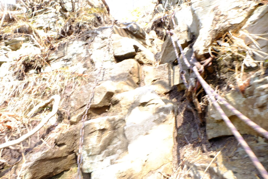 スノーシューに履き替えた後、すぐに鎖場![]()