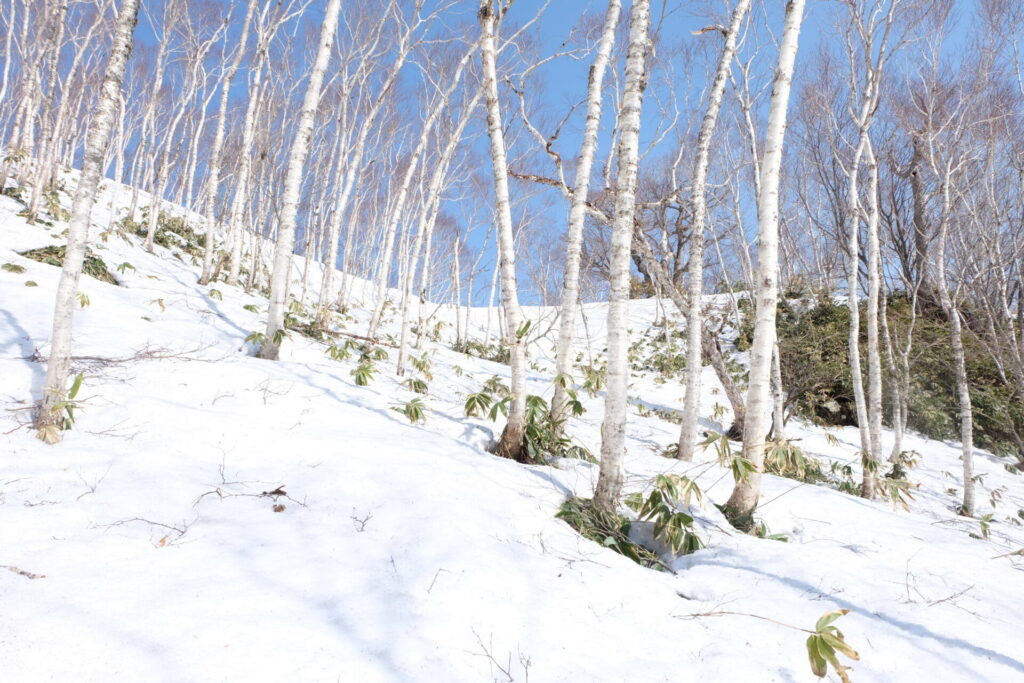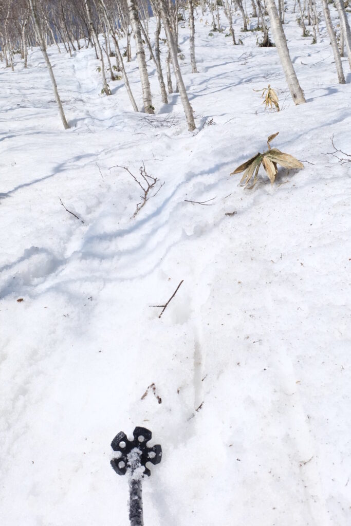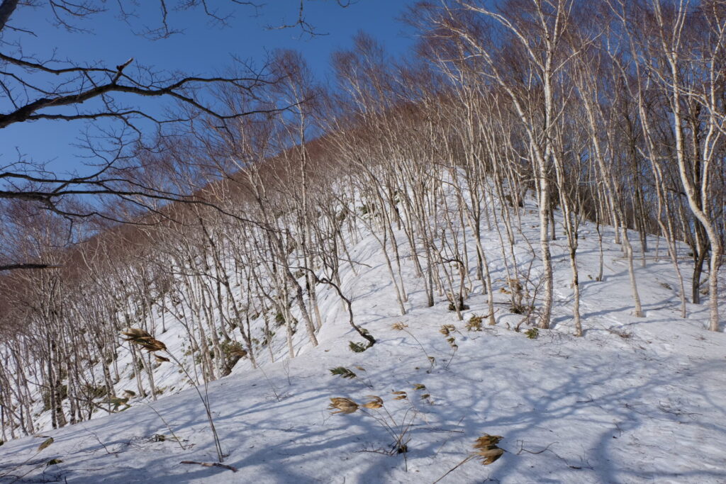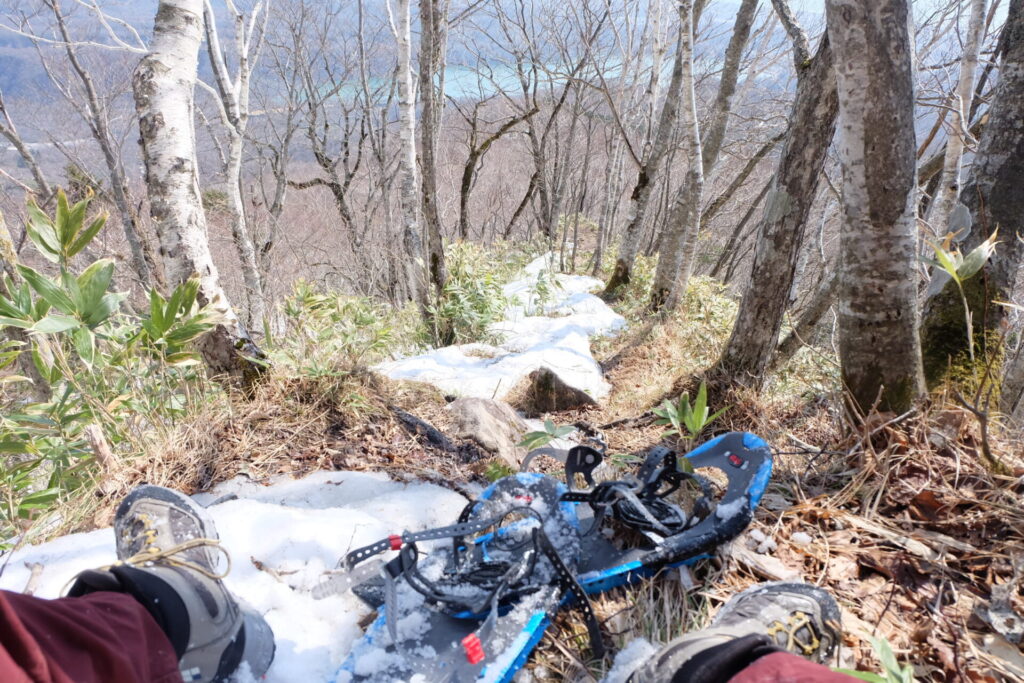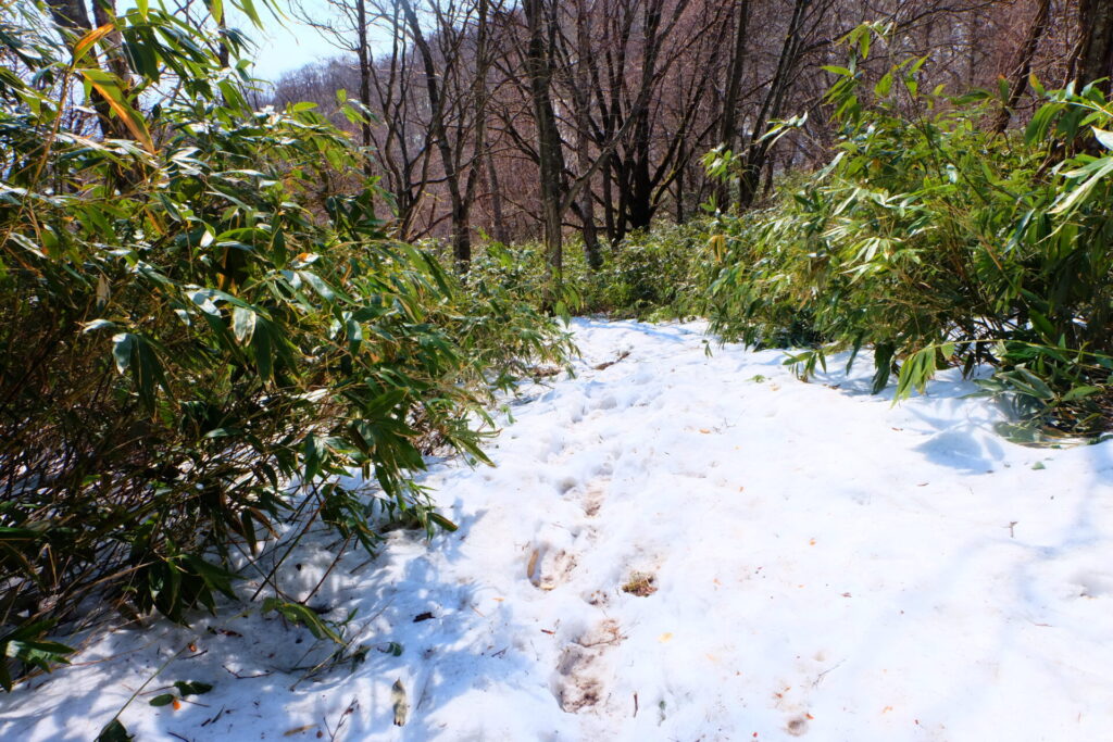▼スノーシューの天敵笹が出てきたので、慌ててトラバースして登山道に戻る。