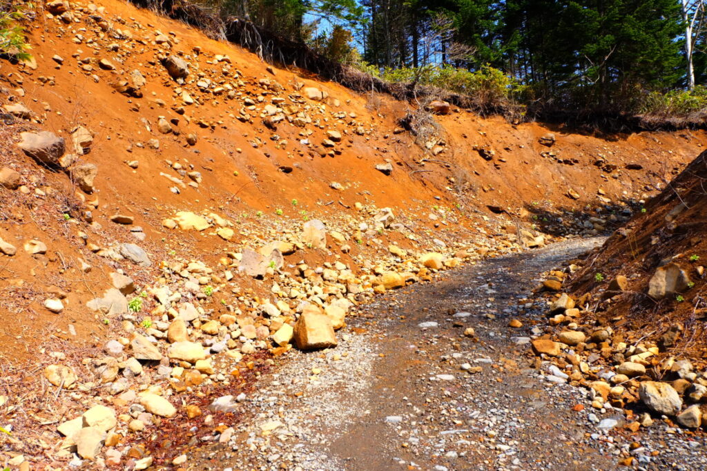▼ひょっとして帰りは通行止めになるのでは!と思っていた林道の落石![]()
