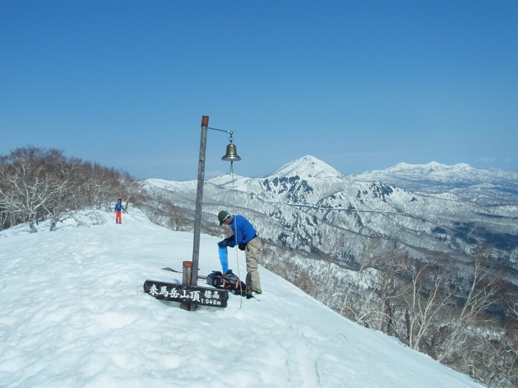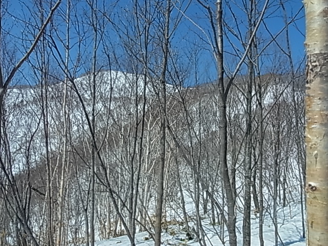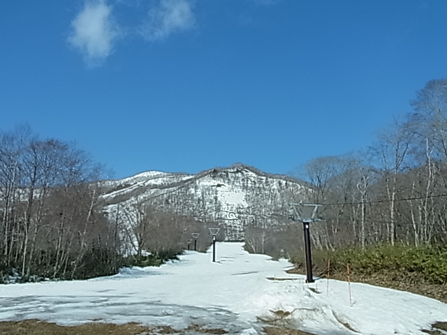 ▼ゲレンデの最頂部にきて、来馬岳の頂上がはっきり確認。少し元気が出る。