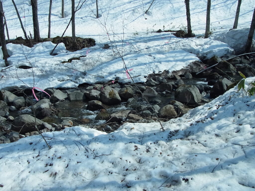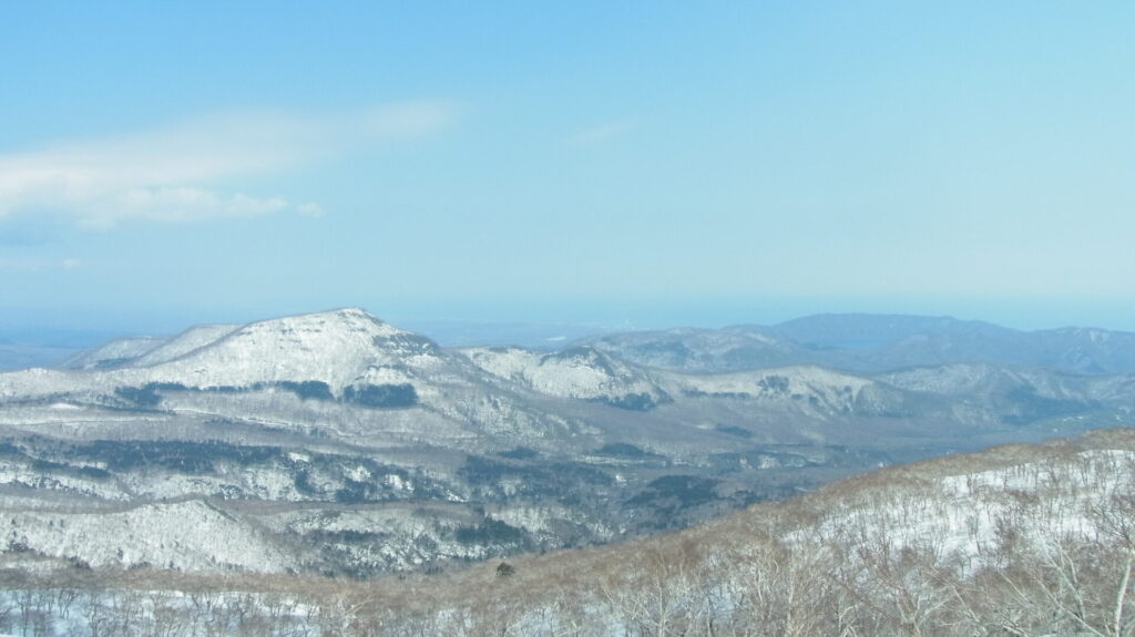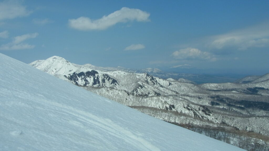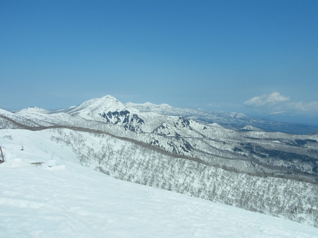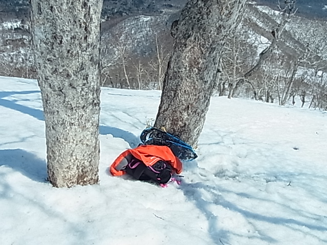 「まだ時間がはやいので、北縦走して、スキー場に抜ける林道に下りてゆくルートがある。もっと先には「ばけもの山」もある。」
