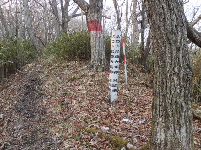 ▼登るとすぐに、「ポロト稲荷大明神社跡」の標柱