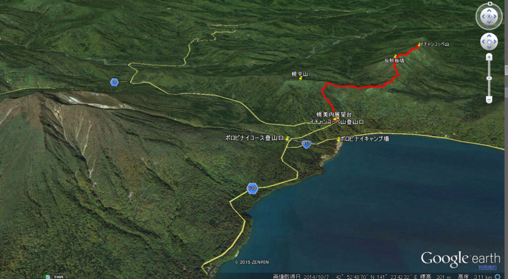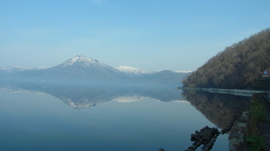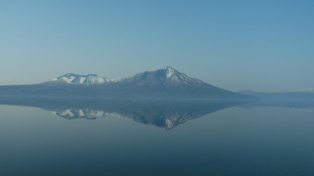 「イチャンコッペ山」 1/2~無風の支笏湖,鏡面のようだ~