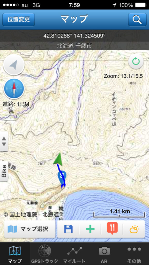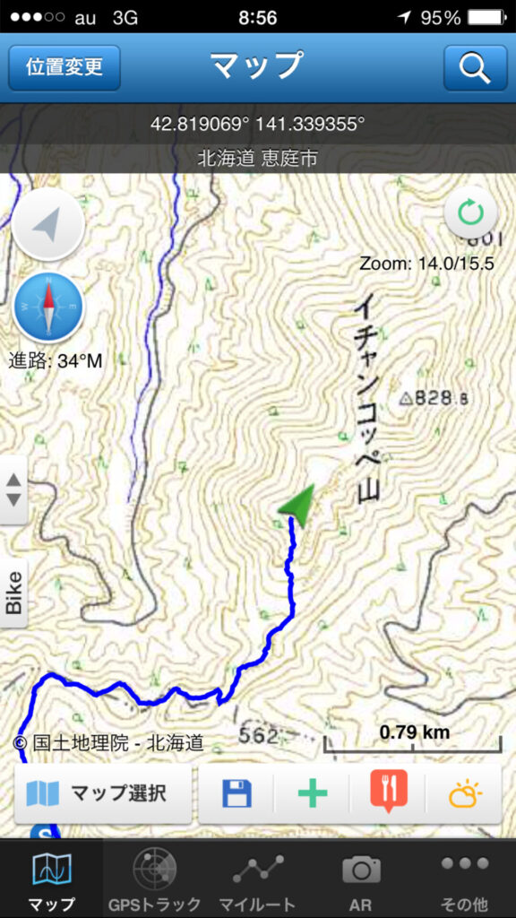 ▼位置の確認。登り切ったすぐそばにあったのか。