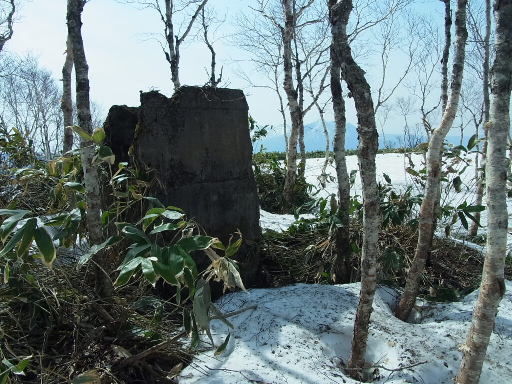▼高さ1m程度のコンクリートの構築物発見。ソ連軍に備えるためアメリカ軍が建設しようとしたレーダーサイト施設の跡地と言われ、施設の建設中に朝鮮戦争が勃発してレーダー器材は他の地域に転用され、基礎部分のみ残っている。(ヤマレコ基本情報より引用)