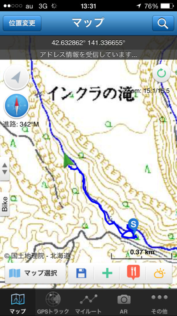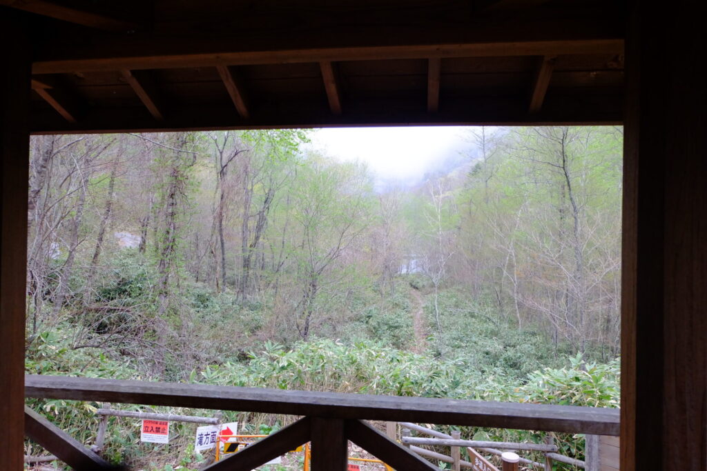 ▼駐車場に戻った。展望台から滝が見えるじゃないか! ただし、葉が生い茂った時期は見えないだろう。
