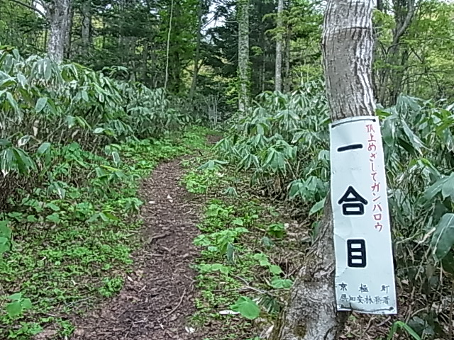 ▼京極のふきだし公園の1kmほど手前で左折し、ここからチャリを降りて押し歩きする。道はずっと登り勾配。なので、ここからが登山記録の始まり!