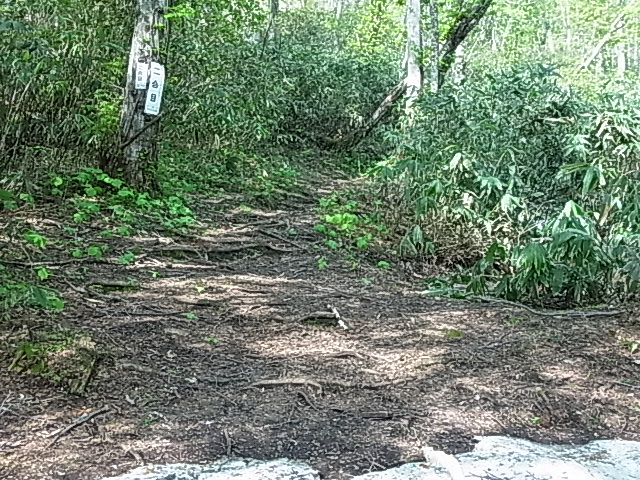 ▼真狩コースの分岐点。岩場経由での案内があった。