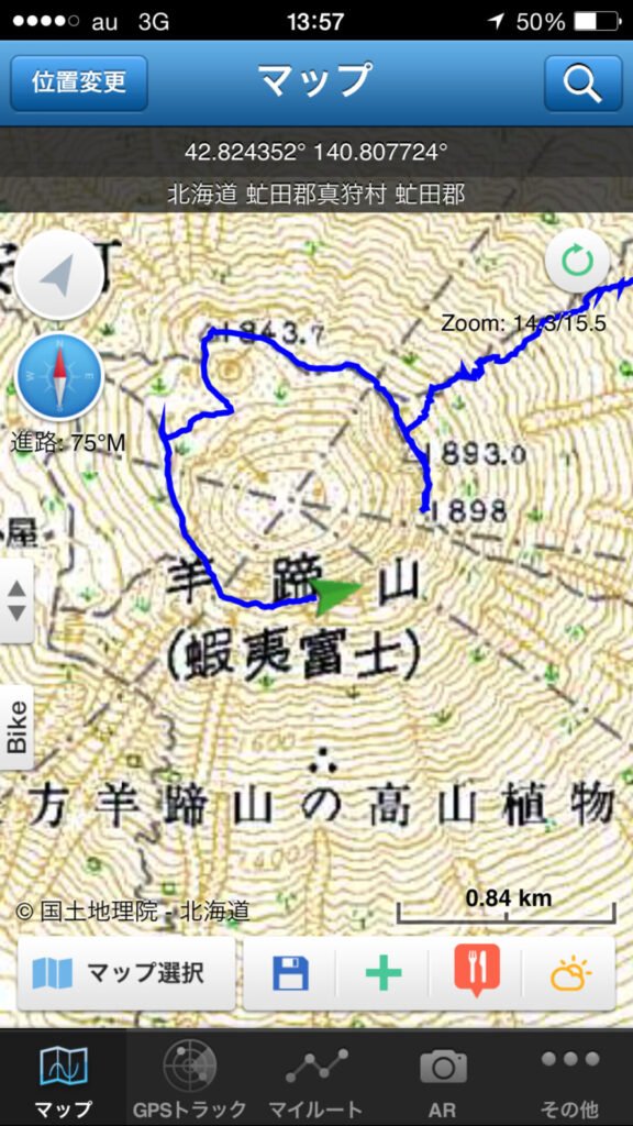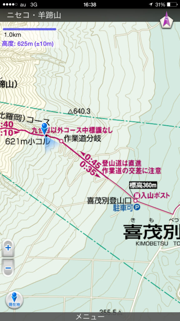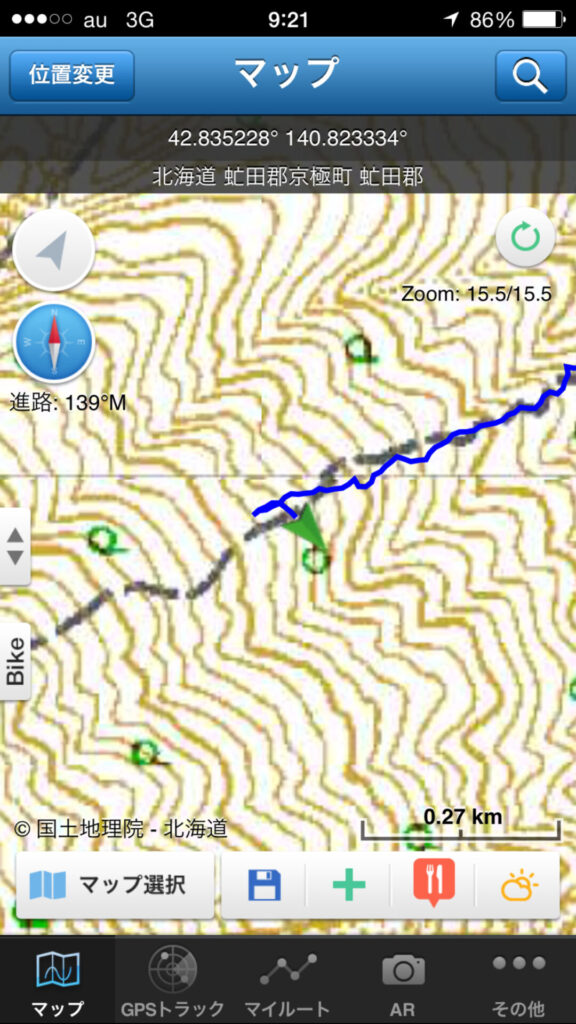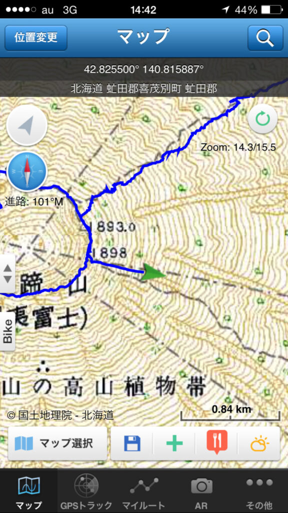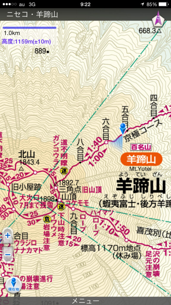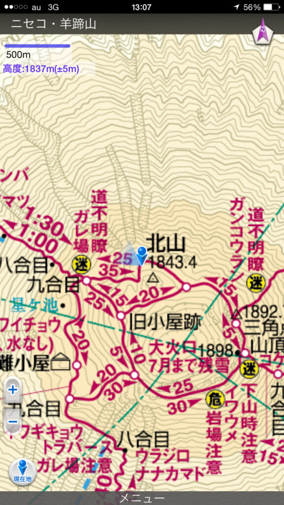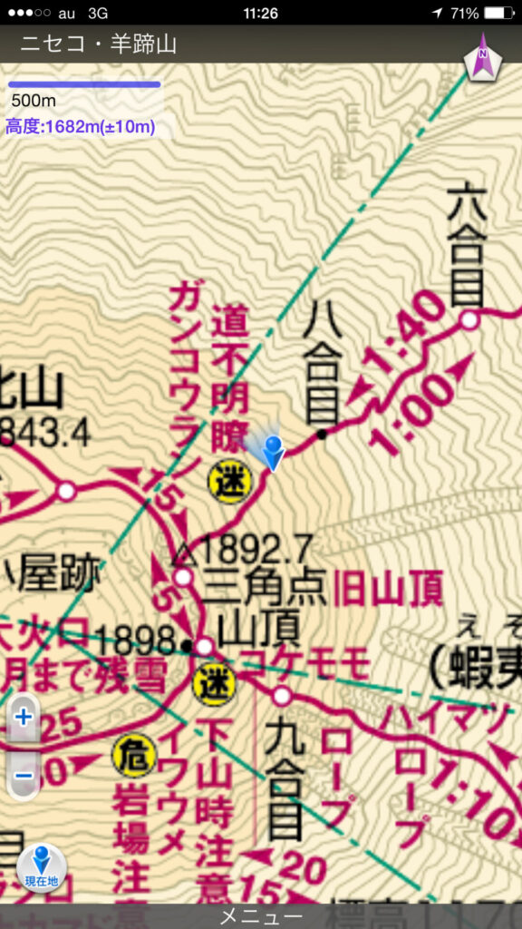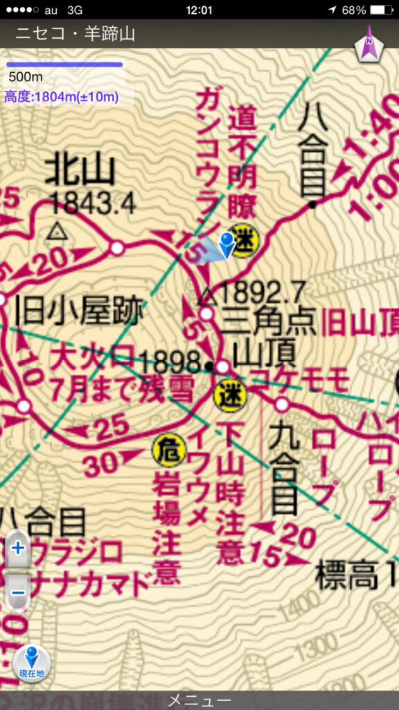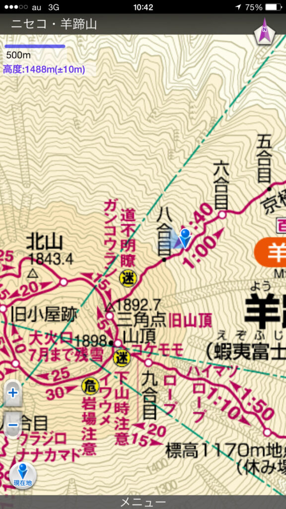 羊蹄山は単調に登るだけなので、コルやポコもなく、地図にあるのは等間隔のコンタだけなので仕方ない。