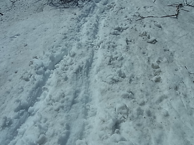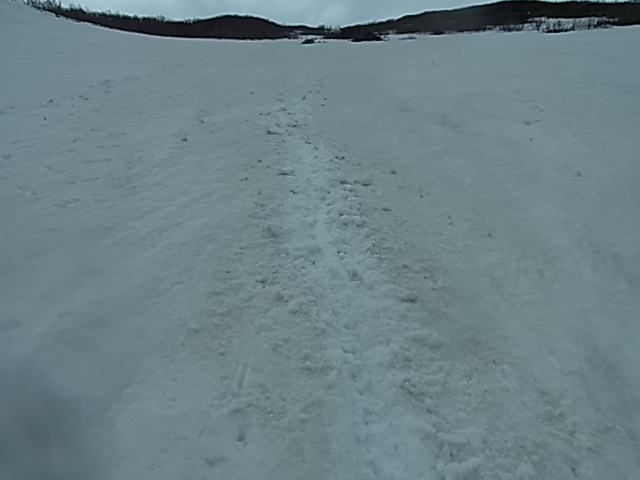 ▼シリボー軌跡。アイゼンを付けた靴でも十分滑る。ただし足は大変疲労する。