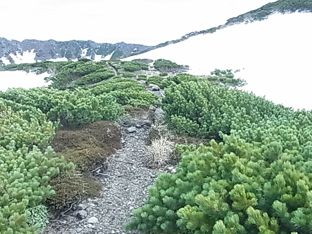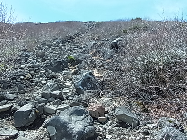 ▼5.5合目あたりから、日当たりのよい部分の夏道が出ていた。
