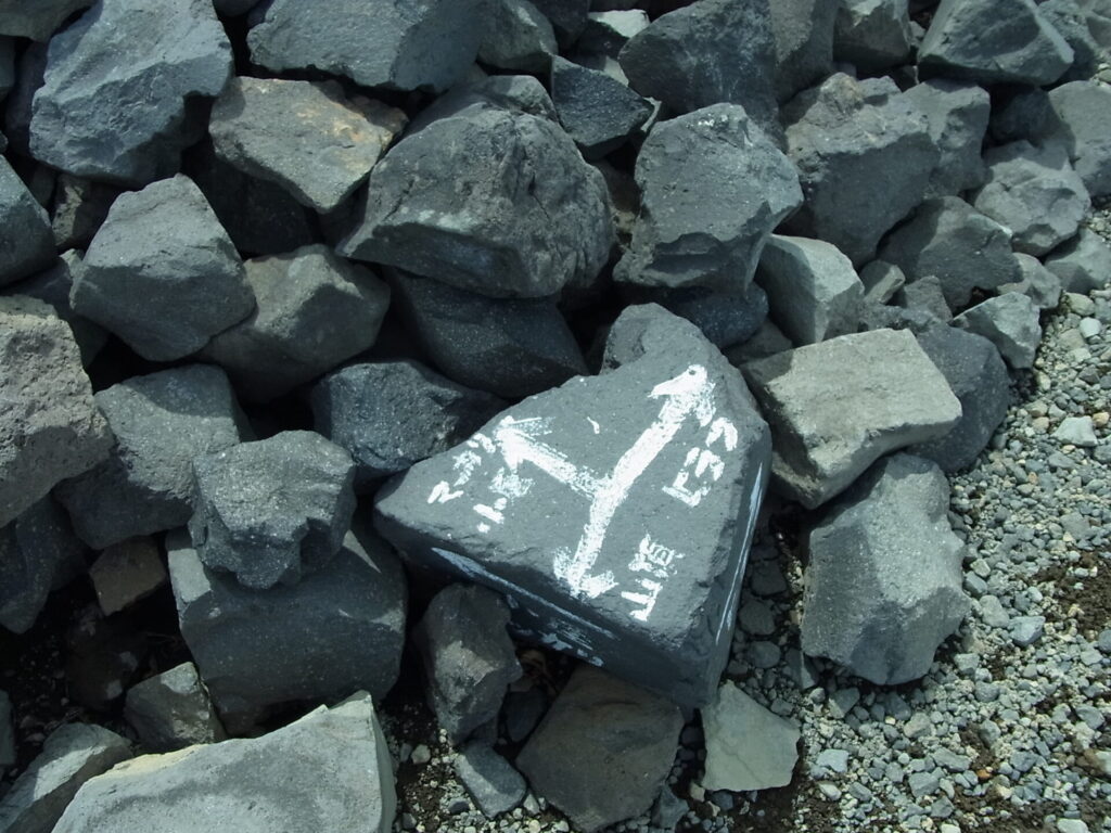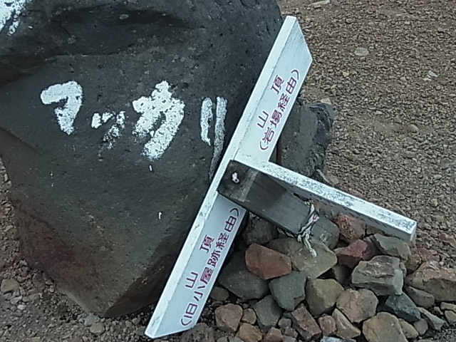 山頂の案内は、時計回りでされている。つまり、明らかに距離の短い岩場を避けた案内となる。不安になる。