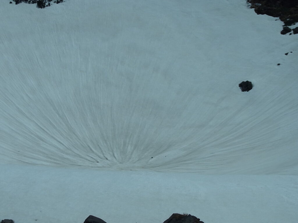 ▼山頂部に到着!! これが大なべか!一般の人は羊蹄山の山頂がこんな風になっているとは知らない。自分も円形の平らな部分が有ると思っていたくらいだ。