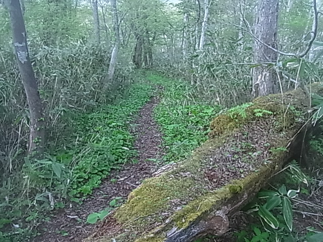 ▼夏道をひたすら下る。のどカラカラ!全く標識が無い。テープのマーキングも無い。つまり人気の無いコースということか?