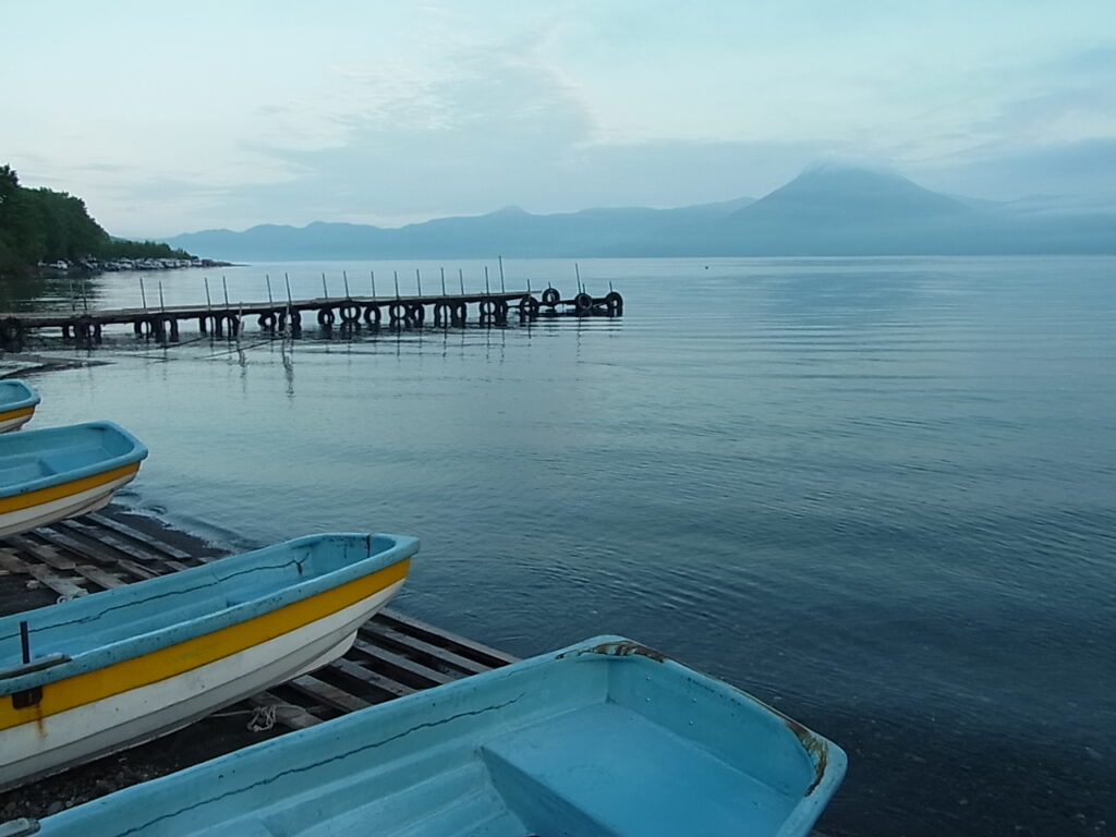 ▼支笏湖モーラップキャンプ場の浜辺からスタート