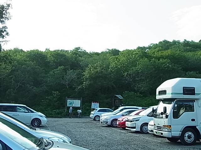 ▼午前6時の7合目駐車場はもうすぐ満車!