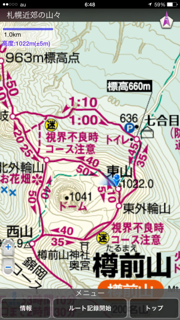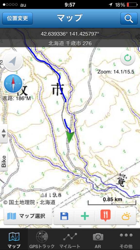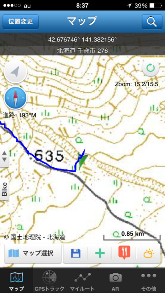 ▼位置の確認 まだ、下りの半分も来てない。![]()