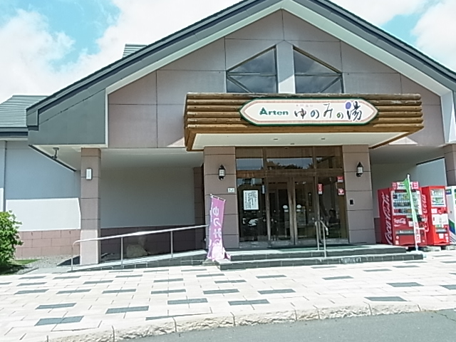 ▼「アルテン ゆのみの湯」前のバス停ベンチで休憩