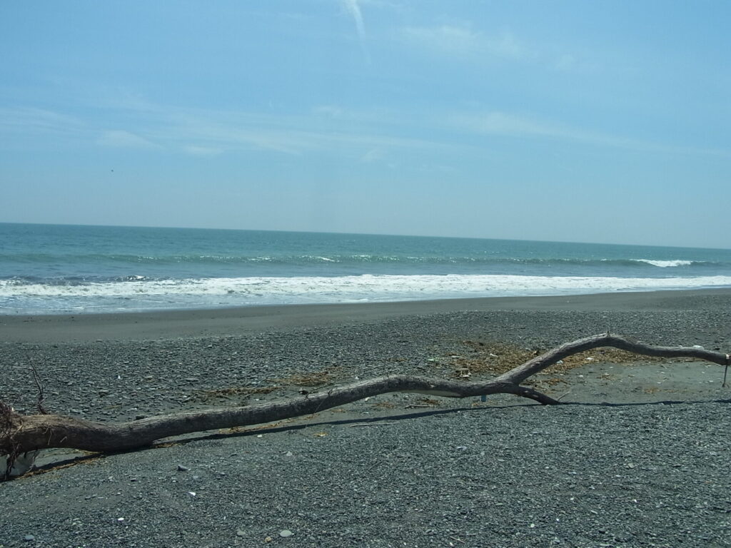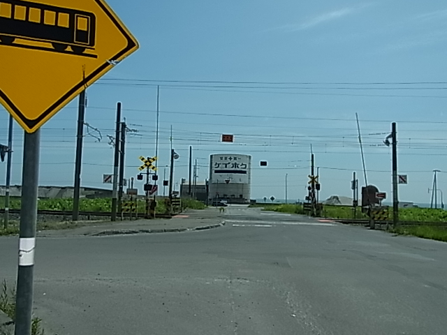 ▼「覚生踏切」をわたり、「ケイホク生コン」の裏は太平洋!