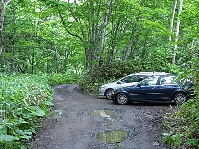 ▼登山口に駐車場があるが、河川氾濫で林道が流出している。そのため500m手前ぐらいに駐車。路側にぽつぽつ停めても10台ぐらいだろう。