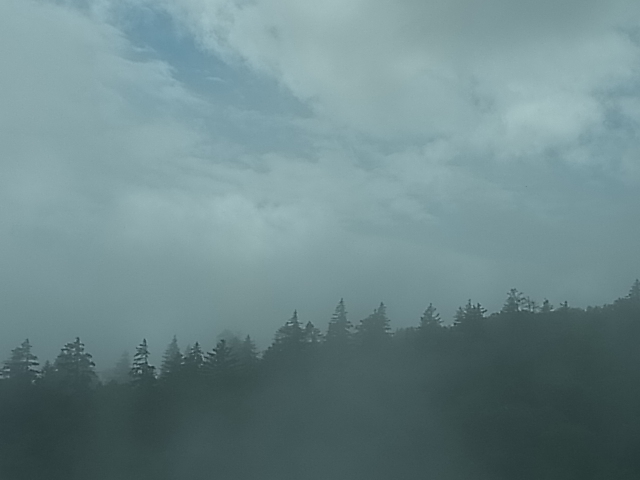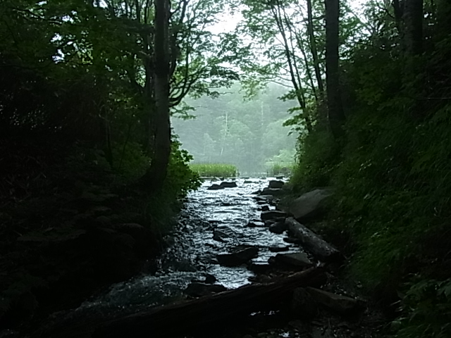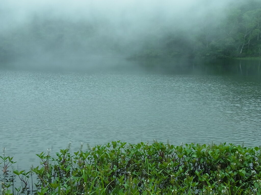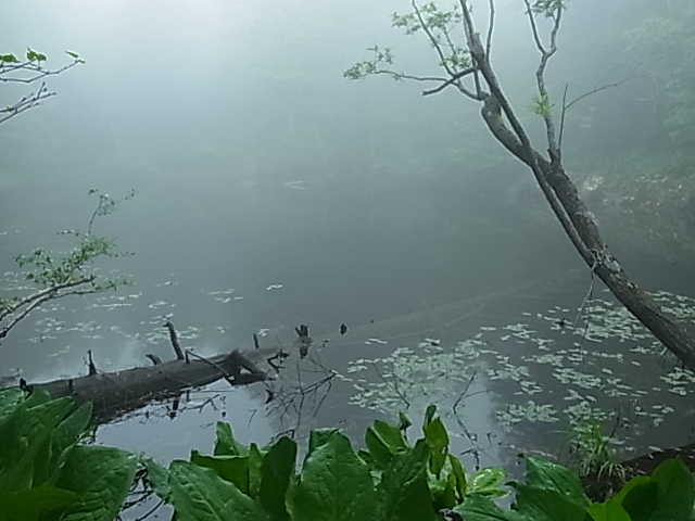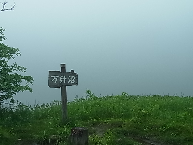 ▼霧の「万計沼」見納め。ナチュラルUを駆け足で追う。
