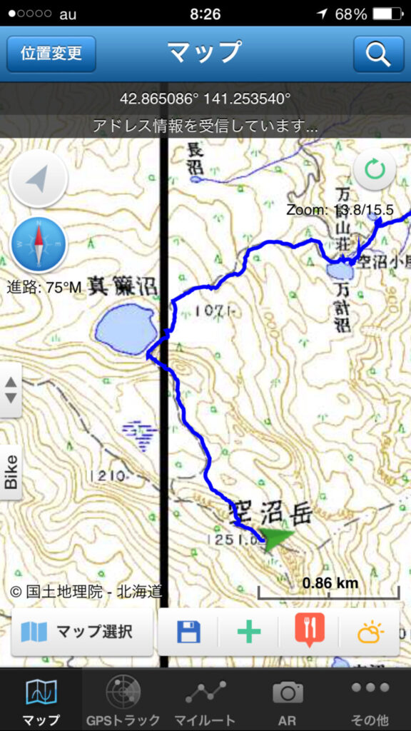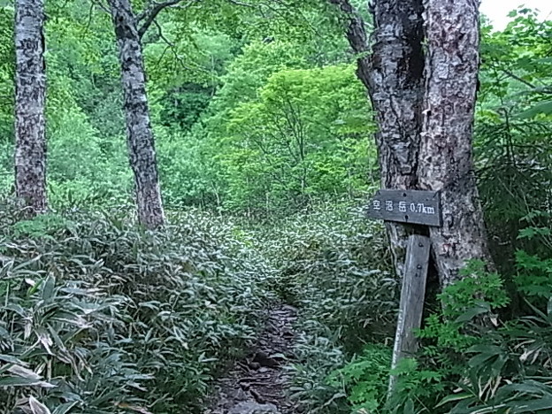 ▼空沼岳まで0.7km ナチュラルUの電池消耗が見だってきた。休み休み登る。それにしても山頂も遠くの景色も全く見えない行程だ。