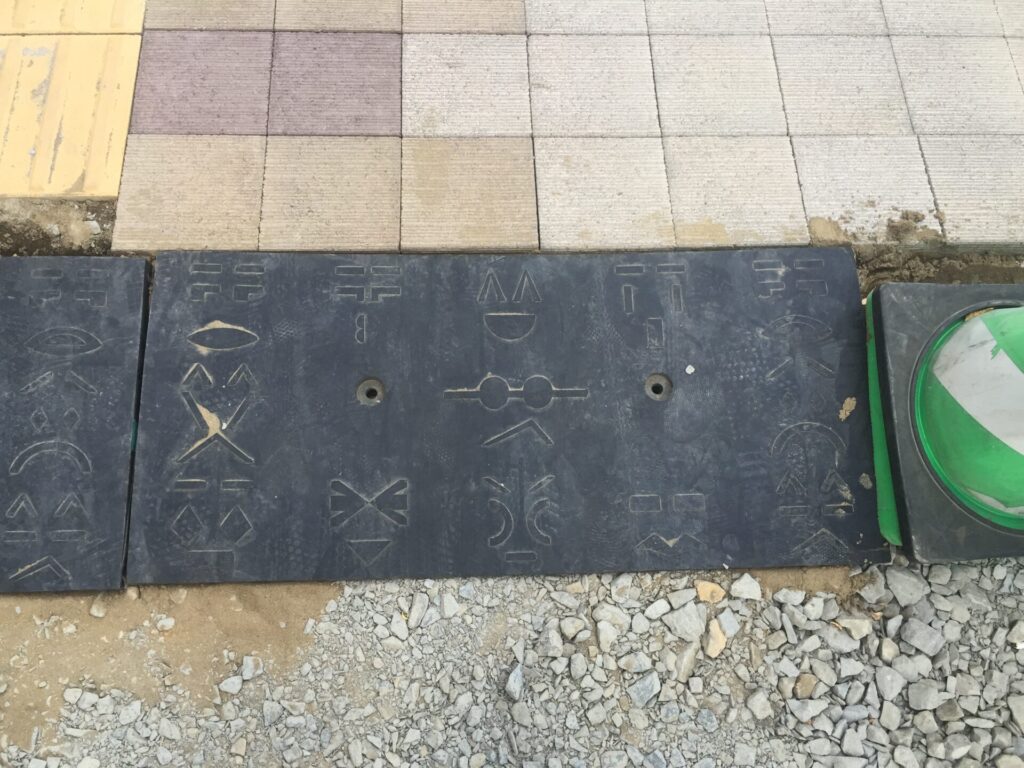 ▼懇親会場の西18条まで裏参道を歩いている途中にあった工事現場のゴムマット
