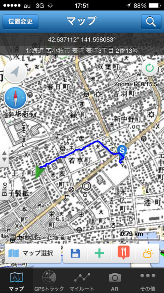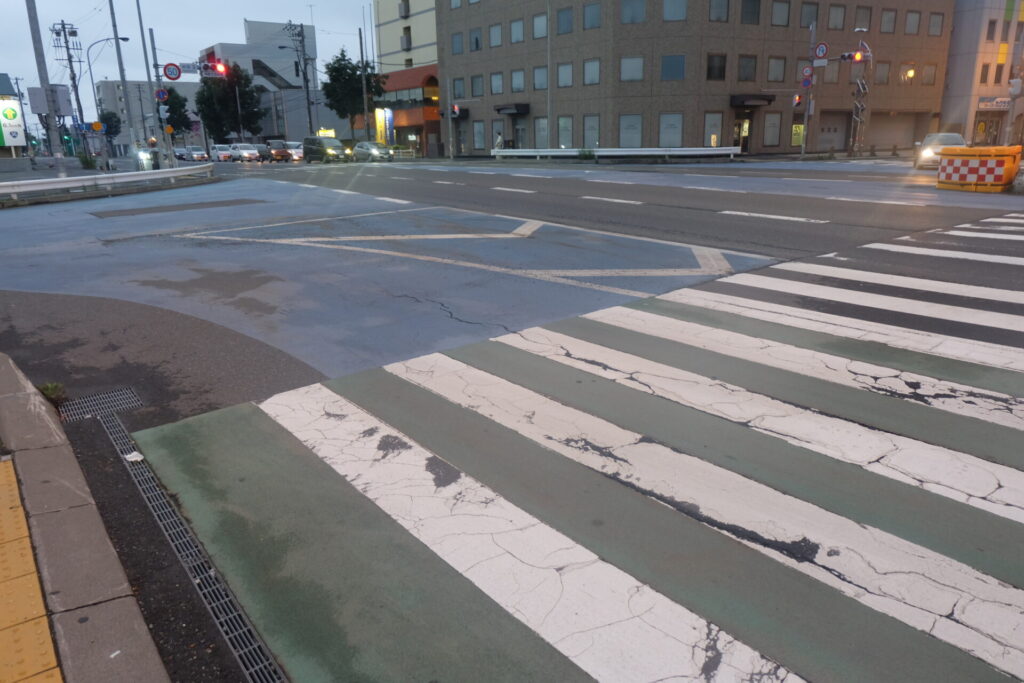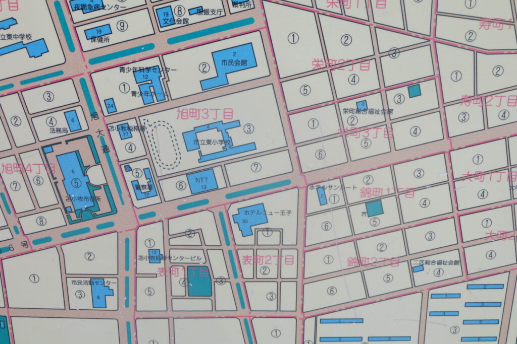 ▼若草小学校沿いに歩く。この国道に対して斜めにはしる市道は、苫小牧港が掘り込まれる前の国鉄日高本線の旧ルート!