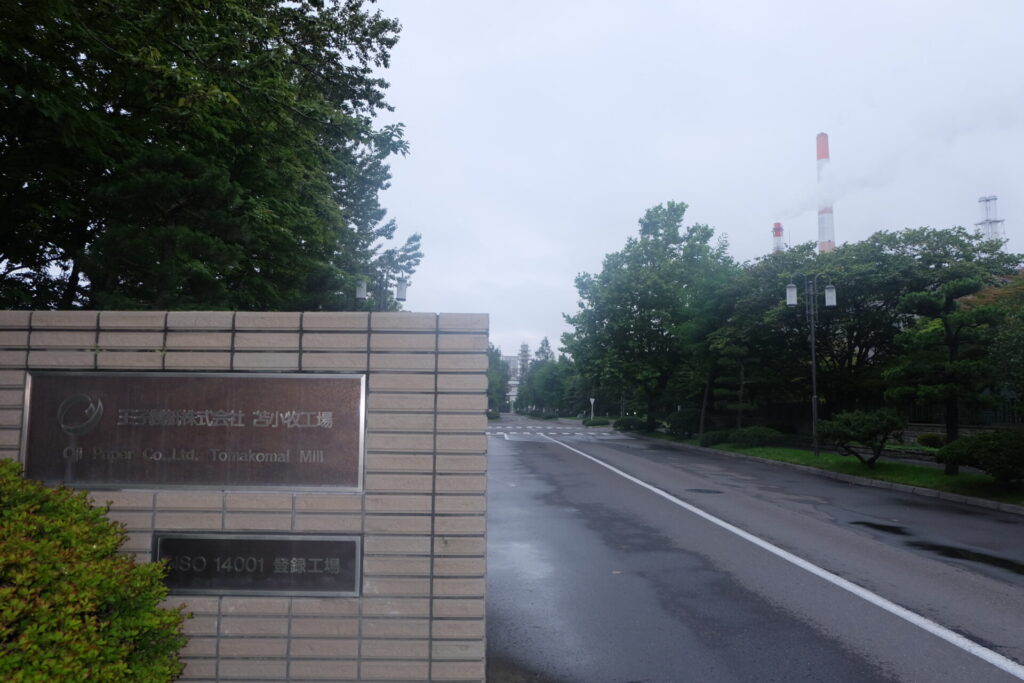 ▼王子製紙苫小牧工場の入口 ここから先は入れない。