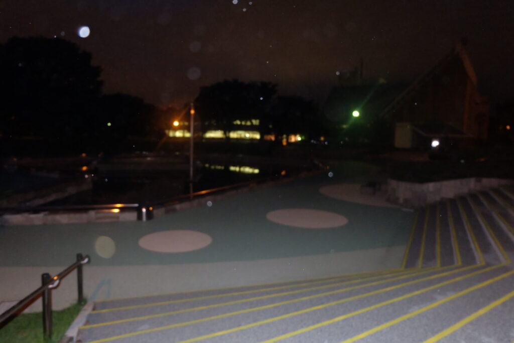 ▼若草小学校のグラウンドと白鳥王子アイスアリーナ