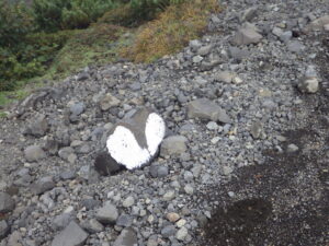 ▼よく見ると、途中で寄った避難小屋のところでデータが途切れ、避難小屋所にゴールを表すGのマークがある。