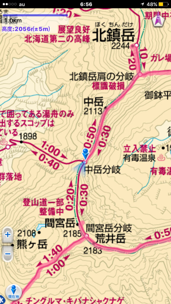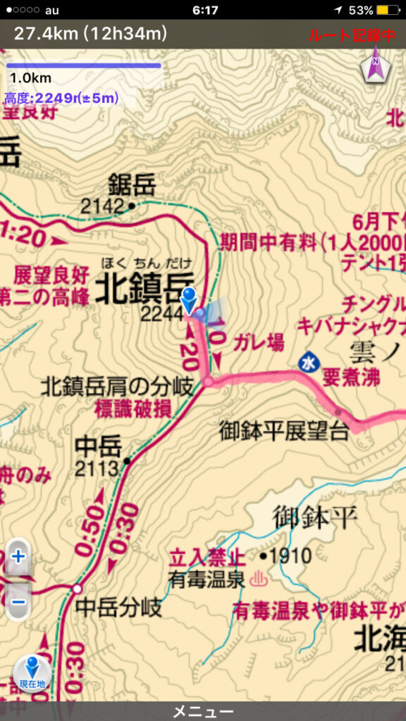 ▼位置:雨が降らなければ、歩いてふもと駅まで降りようと思ったが、素直にロープウエイを使うことにした。登山はここで終了。