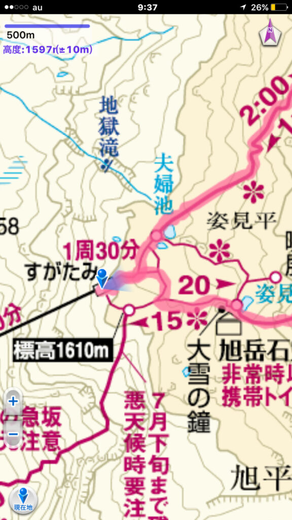 自分も暗いうちに出発して、旭岳ロープウェイに戻る。