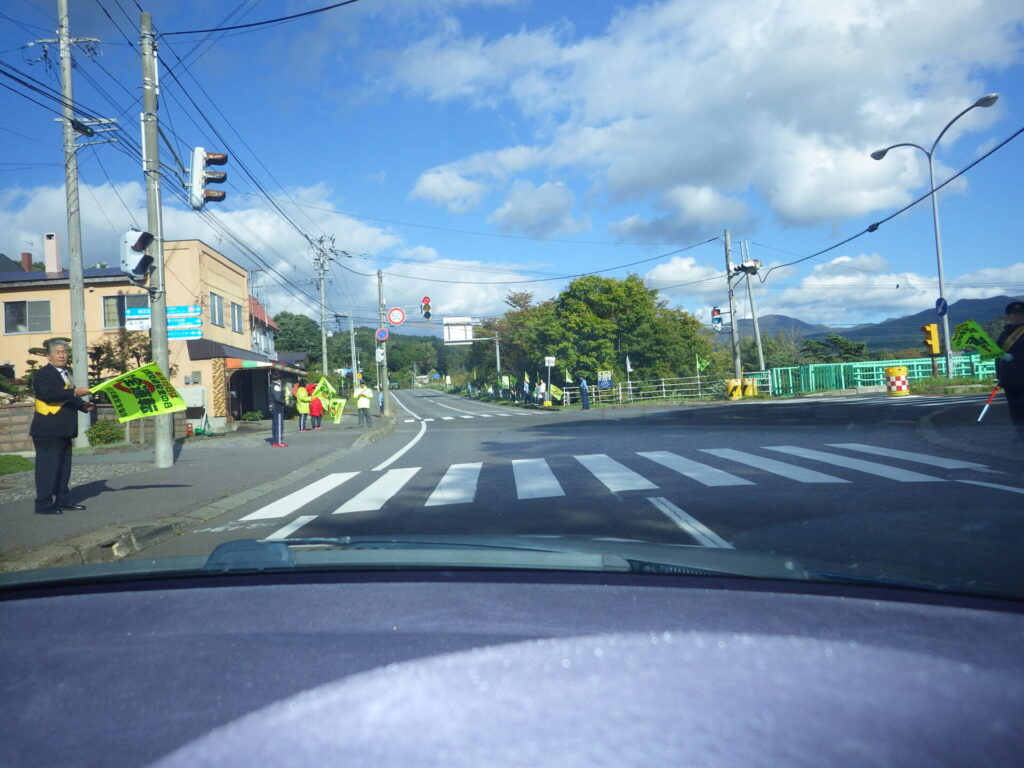 ▼交通安全運動で止められたら、窓越しにリンゴをもらった。