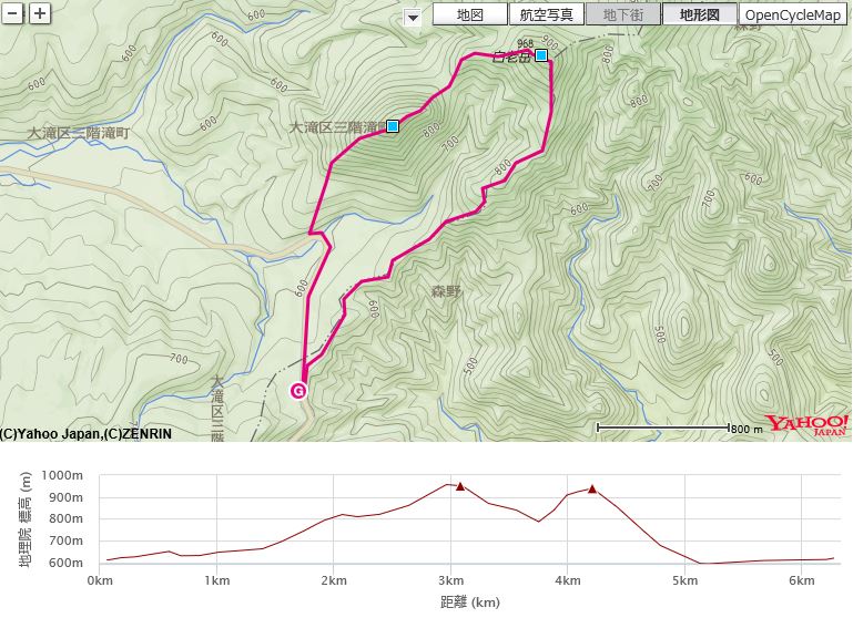 最低/最高高度: 608 m / 963 m(高度差355m)