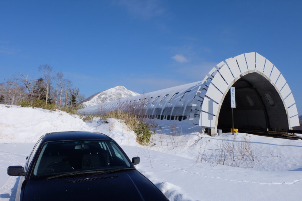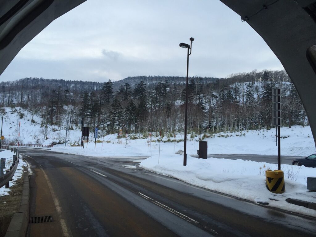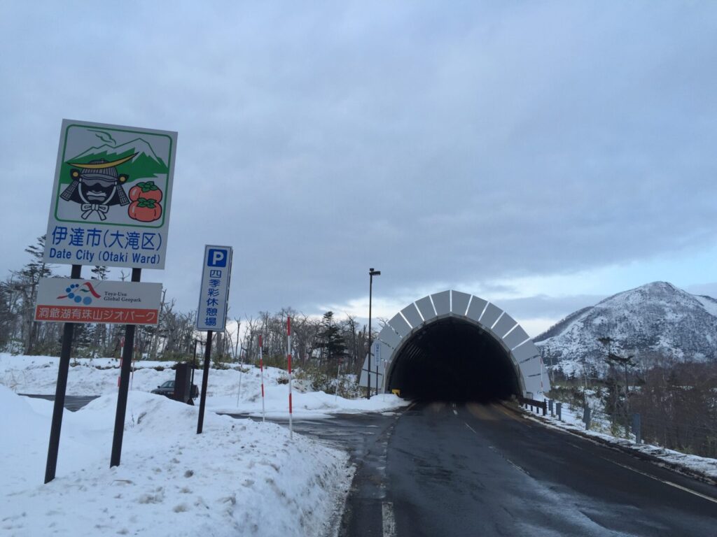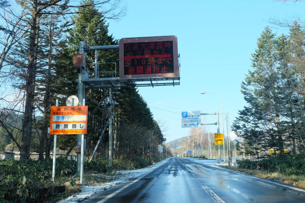 ▼道道大滝白老線は冬期間、午前10時から午後5時まで開通している。