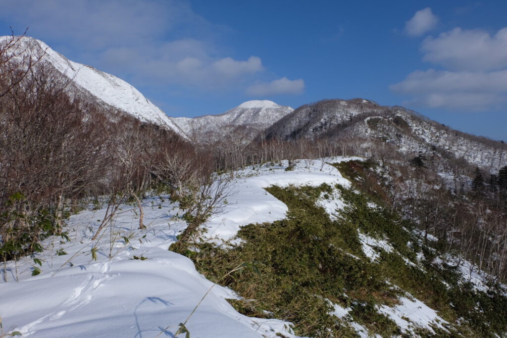 ▼左が南白老岳、中央が白老岳、右は821ピーク