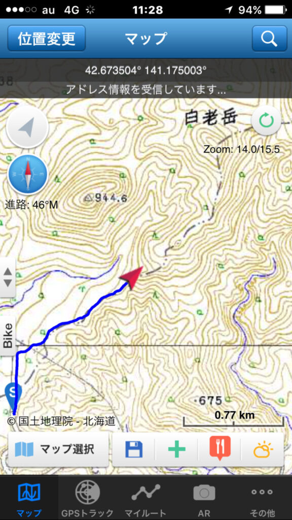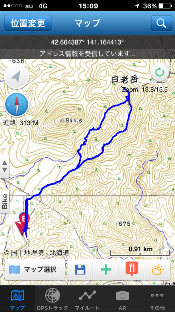 ▼本日の目論みはこのようになっている。峠に車を停め、時計回りに、白老岳に登り、その南西の南白老岳に登り戻る計画だ。