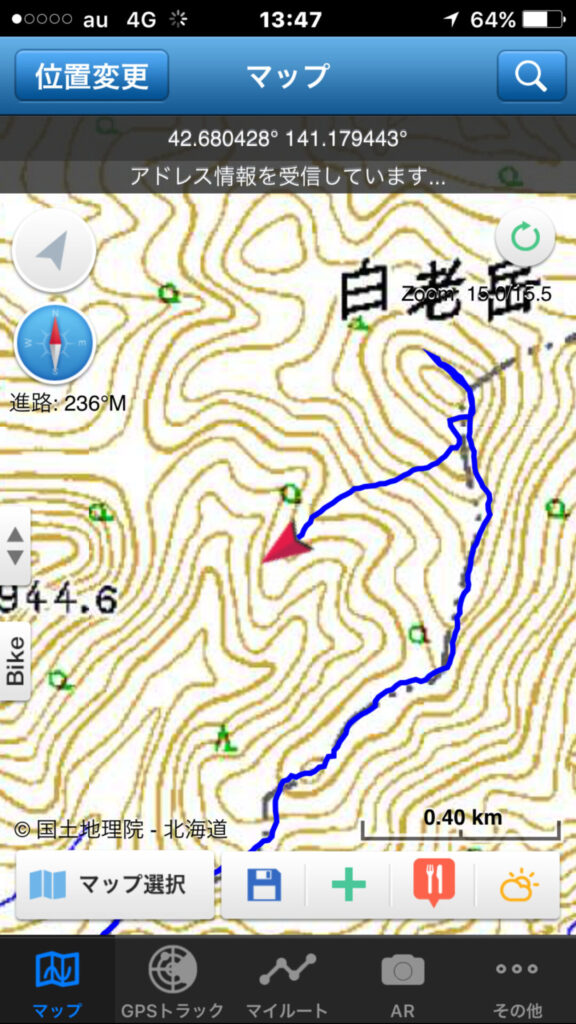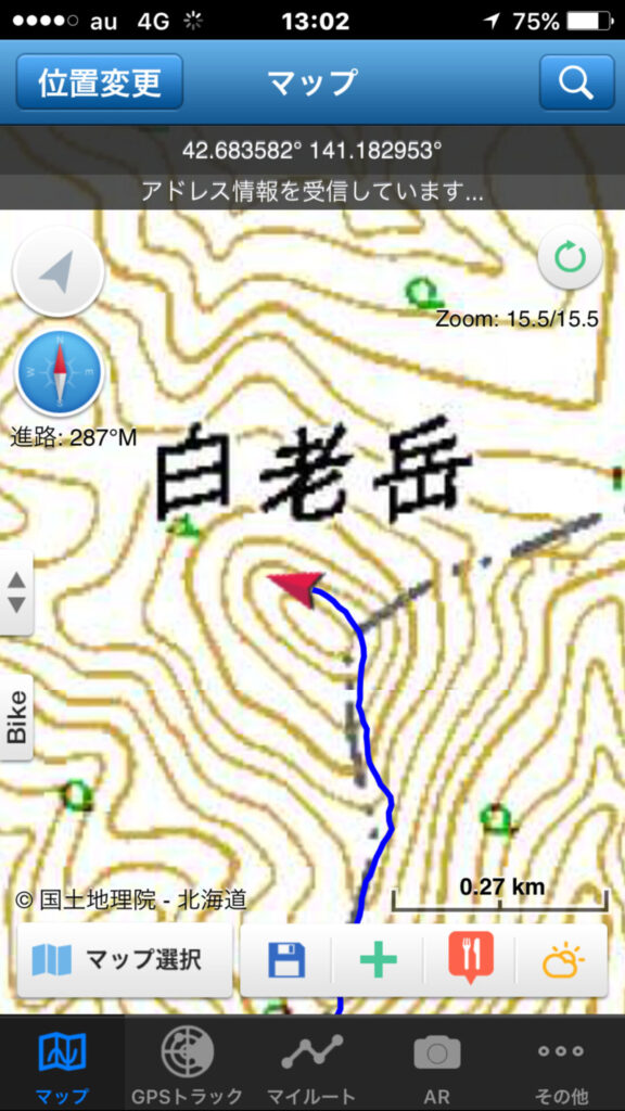手袋を忘れた、途中モンベルに寄って手袋を買う。いかにもこれから登る格好に、店員さんが何処に登るんですか?の問いに白老岳と答える。