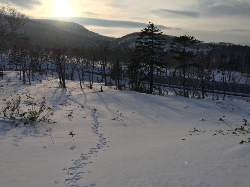 ▼相当弱ってます(+o+) 美笛からの登山者の足跡があった。多分、昨日かな?