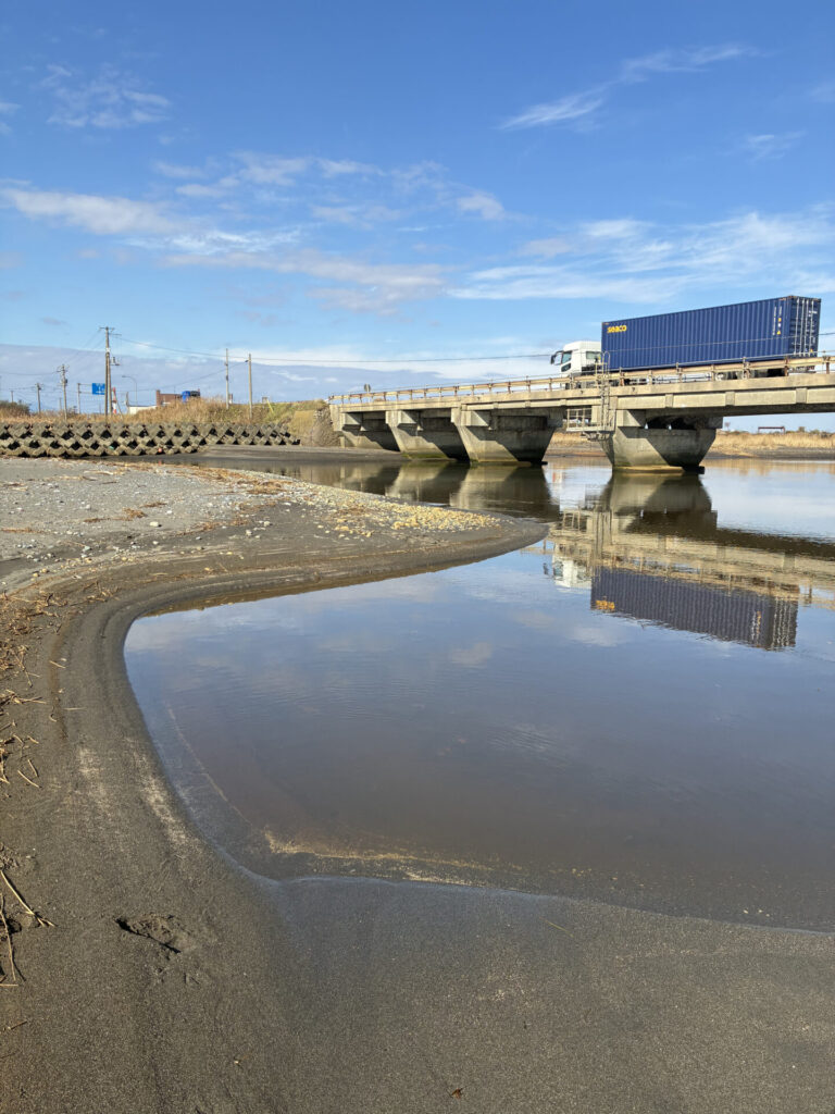 ▼勇払橋を通過する日高線の列車時間を推察する。