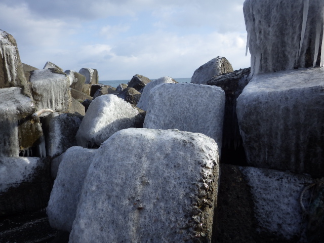▼何と幸運!ブロック伝いに渡れてしまった。4km短縮!