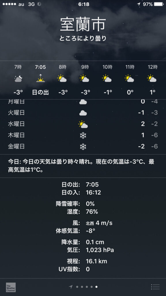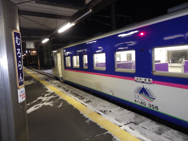 ▼JR室蘭駅から6:12発の始発に乗る。寒くてカメラの動きが非常に鈍い!