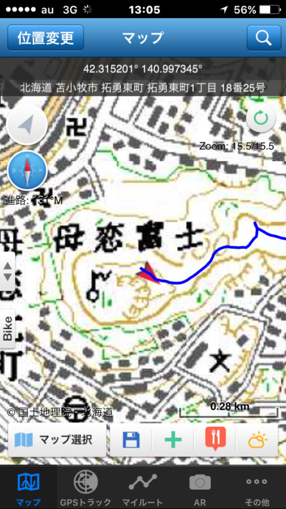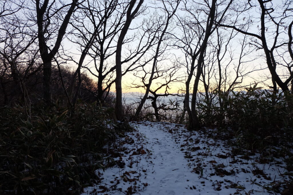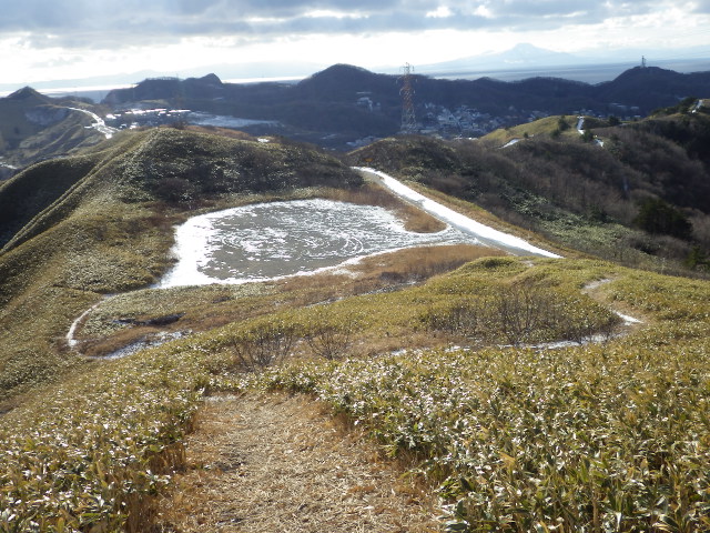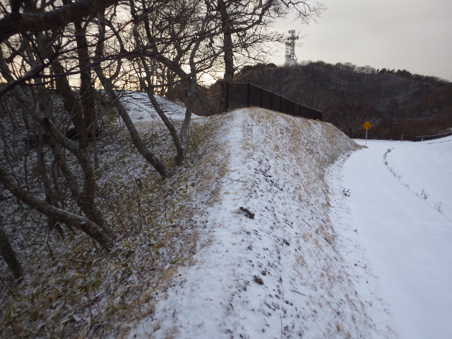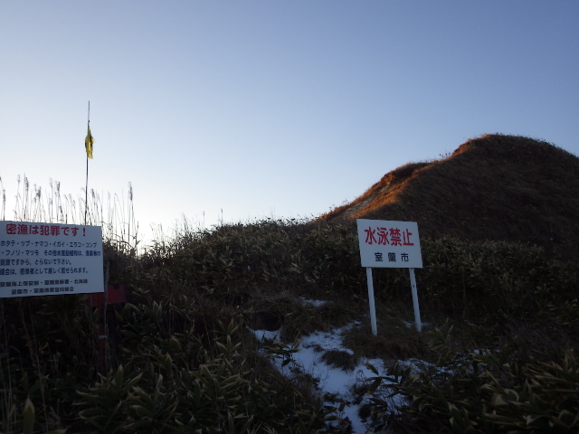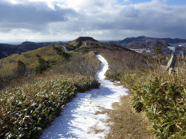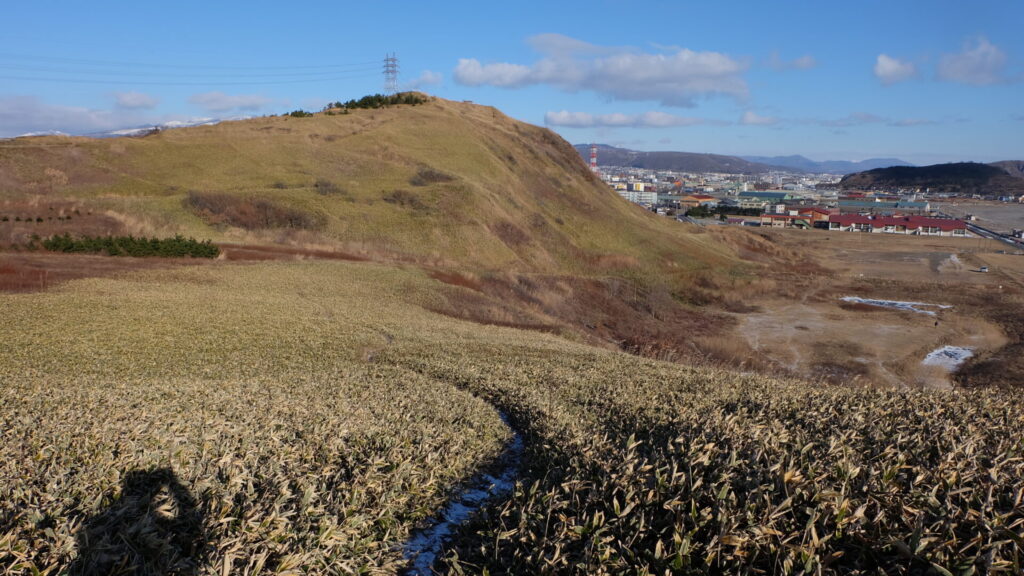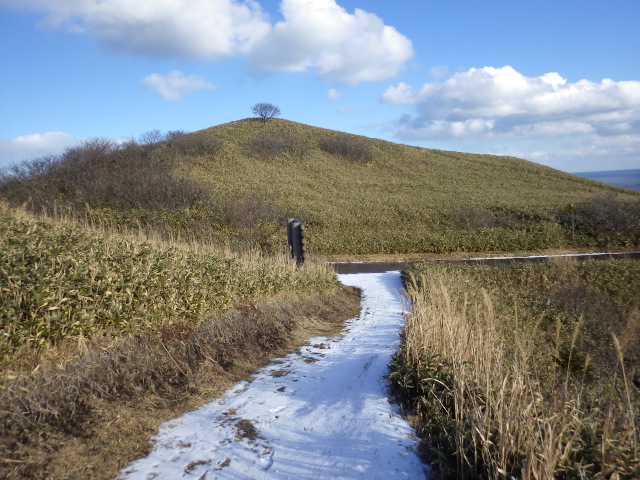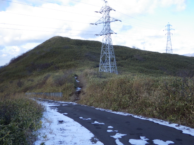 ▼台形状のやまが母恋富士だろうか?片道1km。13時前だが気温の低下を感じる。