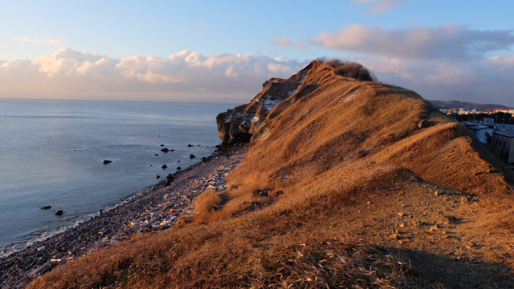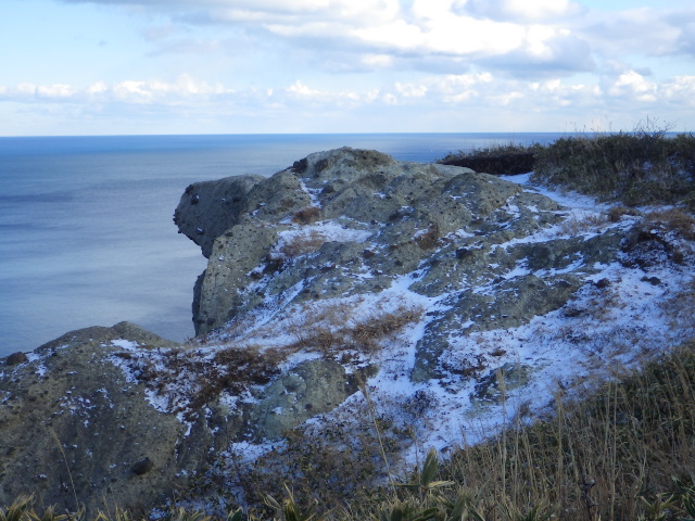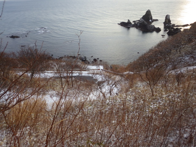 ▼イタンキ岬に何とかして登る決心が硬くなった。南側から降りられるか計画時に未確認。